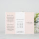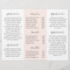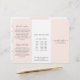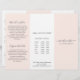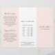 Elegante dreistellige Broschüre in Rosa und Weiß mit Ihrem Firmennamen und grauen handgeschriebenen Schriftzeichen auf der Vorderseite. Die Rückseite verfügt über Ihre Betriebsstunden und Kontaktinformationen. Das innere Falten Panel hat zwei Header und Textfelder. Die Innenseite verfügt über mehrere Vorlagen für Informationen über Ihr Unternehmen auf den äußeren Tafeln und eine Preisliste im mittleren Bereich. Dieses einfache und feminine Design ist ideal für Makeup-Künstler, Haarstylistin, Lashes, Beauty / Nail Salon oder jede Frau im Besitz.