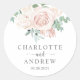 Dieses Design ist mit einem blütenrosa Blumenmotiv mit Eukalyptus und Grün gestaltet. Diese klassischen Rundaufkleber sind die perfekte Ergänzung zu Ihren Hochzeitsfeiern, Dankeschön-Karten und Gastgeschenk Hochzeit-Taschen.