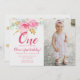 Blush Pink Floral Baby's First Birthday Foto Einladung