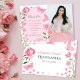Dieses rosa Quinceañera Design verfügt über einen Bogen mit Rose, Blume und Schmetterlingen auf der verlassen Seite, können Sie Ihre eigene Danksagung hinzufügen. Auf der rechten Seite können Sie ein Foto hinzufügen. Auf der Rückseite ist ein Rand von Blume und Rose und Sie können den Text in der Innenseite anpassen. Sehen Sie sich die gesamte passende Auflistung an. Alle Kunstwerke werden digital von Kaitlyn Thomas © gezeichnet.