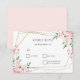 Individuell anpassbare Hochzeitskarte RSVP in klarem Weiß. Mit hübschen Bouquets von rosa, rot-rosa Blume mit goldfarbenem geometrischem Rahmen.
