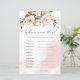 Blush Pink Floral Where Were Sie spielten Boho Brautparty-Spiel mit sanften rosa Rosen und goldenen Glitzer-Glitzern im boho-Stil bei Aquarellfarben-Hintergrund