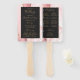 Dieser elegante, moderne Hochzeitsfan besticht durch einen rosafarbenen Hintergrund, der mit einem vergoldeten Imitat-Glitzer besticht. Der Text erscheint in goldfarbener Handschrift und in kopperplate-Schriftart auf einem schwarzen Rechteck.