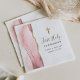 Der links Rand dieser eleganten Serviette besticht durch eine rosa Wasserfarbe, die mit einem vergoldeten Imitat-Glitzer bestickt ist. Über dem anpassbaren Text erscheint ein Imitat mit Goldfolienkreuz, das Handschrift, Copperplate und kursivem Schriftart in Holzkohlegrau auf weißem Hintergrund kombiniert. Personalisieren Sie es mit dem Namen des Ehrengast und dem Datum.