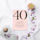 Modern style 40th birthday invitations with heading "40" text in real metallic foil. Your event details are printed in matte black. Gold accents on a feminine light pink background.