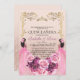 Moderne, rosa und goldene Einladung mit rosafarbenem Kleid und rosa rote Rosen, Goldstaub mit goldenem Farbpour (das Gold ist ein digitaler Effekt, keine echte Folie!) und moderner Kalligraphie. Hübsch und elegant, luxuriös und modern eingerichtet.