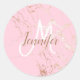 Blush Pink Gold Girl Script Monogram Runder Aufkleber