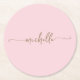 Blush Pink Gold Monogram Name Script Signatur Runder Pappuntersetzer