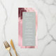 Dieses elegante, moderne Hochzeitsmenü besticht durch einen farbenfrohen, rosafarbenen Hintergrund mit vergoldetem Imitat-Glitzer. Der Text erscheint in einer eleganten, weißen Handschrift und in einem hellgrünen Rechteck mit Kupferplatten-Schriftart. Das agate Design wird auf der Rückseite wiederholt.
