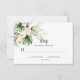 Weiche dunkle Vegetation gepaart mit opulenten, rot-rosa Blume mit goldenen Akzenten RSVP-Karten. Die Rückseite der Karte ist dunkelgrün.