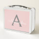 Blush Pink Grau Modernes Script Girly Monogram Nam Metall Brotdose