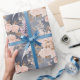 Blush Pink Grey Asian Floral Bird chinoiserie Packpapier für elegante Herbstgeschenkveranstaltungen.