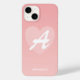 Rosa Farbgestaltung mit einem rosa blütenrosa Herz und anpassbarem weißen Typografie-Skript. Sie können diesen Fall einfach mit Ihrem eigenen Namen und Monogramm Initial personalisieren.