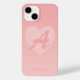 Rosa Farbgestaltung mit einem rosa blütenrosa Herz und anpassbarem Typografie-Skript. Sie können diesen Fall einfach mit Ihrem eigenen Namen und Monogramm Initial personalisieren.