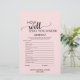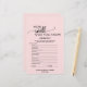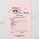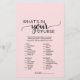Dieses Rosa-Kalligraphie-Spiel "Was in der Handtasche ist" ist perfekt für ein elegantes Brautparty. Auf der Vorderseite der Spielkarte steht "Wie gut kennst du die Braut" und auf der Rückseite der Karte steht "was in deiner Handtasche ist". Das Design besticht durch einen romantischen und süß fließenden, kursiven Schriftart auf einem zarten, hellen Ballett-rosa Hintergrund. Personalisieren Sie die Kartenvorderseite mit dem Namen der Braut und dem Brautparty.