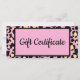 Leckerei Ihrer Kunden stilvoll mit diesem strahlend rosa Leopardendruckpapier und dem Beauty-Geschenkgutschein - ideal für Künstler, Ästhetiker, Makeup-Künstler, Friseurinnen und Boutiquen-Besitzer. Die trendigen Farbtöne und die glänzende Tierprägung machen diese Geschenkkarte zu einem unvergesslichen Erlebnis für alle Beauty-Unternehmen. Personalisieren Sie es einfach mit Ihrem Namen, Ihren Diensten und Kontaktinformationen mithilfe der Tools von Zazzle. Ideal für Ferien, Geburtstage, Werbeaktionen oder alltägliches Gaben - steigern Sie Ihre Marke mit erbittertem, weiblichem Flair.