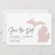 Mit diesem Michigan-Staat-Ankündigung Datum freihalten kündigen Sie Ihr Hochzeitstag an. Es zeigt eine Abbildung der Karte von Michigan, einfache Typografie und handgeschriebene Schrift. Personalisieren Sie diese durch Hinzufügen von Namen, Datum, Ort und anderen Details. Dieser Staat der Michigan Save the Date-Karte ist perfekt für jedes Hochzeitsthema.