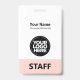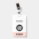 Dieses Abzeichen mit beruflichem Verwaltungsnamen ohne Foto, mit Scan-Bar und großem Firmenlogo ist einfach zu personalisieren. Ein einfaches Business-Design in Rosa Rosa, das sich in Vorder- und Rücken-Größen vollständig anpassen lässt, serifenlose, einfache und moderne Schriftart und ein berufliches und klares Aussehen, perfekt für kleine Geschäftsangestellte, Chef, Gäste. Diese Business-ID-Abzeichen sind mit Lanyard, Metallklammer oder mit Retraktierbar erhältlich. Keine Mindestbestellung, aber rett Geld und genießen Sie Zazzle Rabatte bei mehreren Bestellungen!