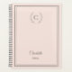 A timeless blush pink colored planner designed with a refined monogram and delicate warm taupe wreath details.