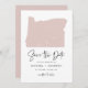Mit diesem Oregon Staat Thema verkünden Sie Ihre Hochzeitsfeier Ankündigung Datum freihalten. Es zeigt eine Abbildung der Oregon-Karte, einfache Typografie und ein handgeschriebenes Skript. Personalisieren Sie diese durch Hinzufügen von Namen, Datum, Ort und anderen Details. Dieser Staat der Oregon Save the Date Karte ist perfekt für jedes Hochzeitsthema.