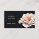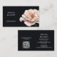 This elegant luxury business card features a blush pink painted rose on a black background. With a scannable qr code on the backside.