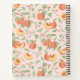 Spiralnotebook mit Pfirsichen mit einem rot-rosa Hintergrund