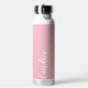 Geben Sie Ihrer Hochzeitsjury oder Ihrer Trauzeugin diese trendige, vakuumgekühlte Wasserflasche, die ihren Namen in weißem, stilisiertem Schriftbild auf einem rot-rosa Farbhintergrund trägt, der zu Ihrem Hochzeitsfarbenschema passt. Stellen Sie die Flasche nach Belieben durch Bearbeiten und Ersetzen des Namens durch Ihren eigenen Namen ein. Wählen Sie Ihre Wasserflasche.