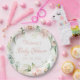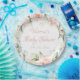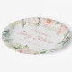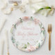 Personalisiertes Rosa-Drehbuch auf einem weißen Hintergrund, elegante Papiertafel mit rosafarbenem, floralfarbenem Aquarellrahmen aus rosa und blütenfarbenen Blume und fließender Vegetation, die das extravagante Drehbuch umgibt, um eine schöne Tischumgebung zu schaffen. Perfekte Babydusche für das kleine Mädchen.