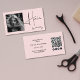 Blush Pink Photo Black Script Hair QR Code Social Visitenkarte