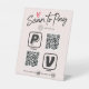 Moderner und trendiger QR Code Scan zur Bezahlung von Zahlungszeichen. Dieses trendige Schild verfügt über ein modernes, stilvolles Kalligraphieskript mit zwei Zahlungsmöglichkeiten.