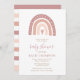 Feiern Sie die demnächst zu erwartende Mami-Babydusche mit dieser niedlichen und skurrilen Einladung in den Farbtönen des rosa Regenbogens und den einfarbigen rosa Streifen auf der Rückseite. Personalisieren Sie es mit Ihren Baby Dusche Veranstaltungsdetails.