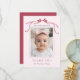 Blush Pink Red Bow Minimal Birthday Photo Dankeskarte