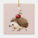 Blush Pink Red Cherry Adorable Hedgehog Keramikornament