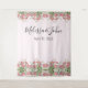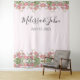 Schöne, elegante und süße Hochzeitskulisse mit Braut- und Bräutigam-Namen und eigenem Text für Datum. Das Design kann auf Seite angepasst werden, ist mit rot rosa Hintergrund, mit einem Garten von rosa Rosen, und in der Mitte der Text. Ideal für Hochzeitsgäste Foto-Shooting auf Empfang, Begrüßung, Zeremonie oder Party.