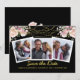 Drei der Fotos Ihres Paares sind Features auf blauem Hintergrund. Rose und Saitenleuchten in rosa Rosen bilden einen eleganten Oberrand.