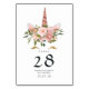 Trendy rot Rosa und Rose Gold Blumen Einhorn Baby Dusche Tischnummer Karte individuell auf Ihre Veranstaltung Besonderheiten.