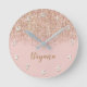 Blush Pink & Rose Gold Glitzer Glam Girl Chic Runde Wanduhr