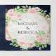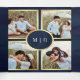 Blush Pink Roses Navy Blue Foto Collage Hochzeit Dreifach Gefaltete Einladung
