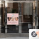 Makeup Studio Fensterfolie - Blush Pink Schwarze Schriftart Ihr Logo Hier 3 Foto Makeup Geschäft mit Namen und Social Media Handle.