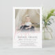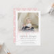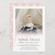 Minimalistische Taufeinladung mit Baptême in einem rosa Pinselskript geschrieben. Fügen Sie Namen und Text in Weich-Grau hinzu. Personalisieren Sie mit einem Foto Ihres Mädchens. Die Rückseite weist ein rot-weißes Muster mit Kreuzen auf. Baptême Einladung mit einem rot-rosa Drehbuch und weich-grauem Text personalisiert mit einem Foto Ihres schönen kleinen Mädchens.
