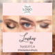 Wimpernstudio Fensteraufkleber - Blush Pink Schwarze Schriftart Ihr Logo hier 3 Foto Wimperngeschäft mit Namen und Social-Media-Handle.