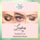 Lashes Studio Window Cling - Blush Pink Black Script Font Your Logo Here 3 Photo Lashes Business with name and social media handle.