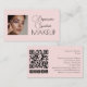 Blush Pink Black Script Social Icons QR Code Photo Makeup Business Card.