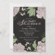 Romantisches Blütenblut, Hübsches Blütenrosa und schwarze Peonies und Grünpflanzen prägen diese Baby Dusche Einladung.