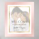Herzlich willkommen auf Ihrer Hochzeitsfeier in Rosa und Gold mit dem eleganten Begrüßungszeichen des Fotos. Einfach online personalisieren. Matching Artikel zur Ergänzung dieses modernen Foto Begrüßungszeichen. Für individuelle Anfragen senden Sie uns bitte eine Nachricht via Zazzle Chat.