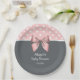 Rosa und graue Polka Dots Bow Baby Shower Paper Teller.