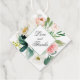 Dieses schöne Aquarell Blumenschild ist speziell für Hochzeiten, Duschen, Party und andere Anlässe entworfen worden. Der gesamte Text kann mit dem gewünschten Text personalisiert werden, indem der in der Entwurfsvorlage angezeigte Beispieltext ersetzt wird. Der Text ist in einem einfachen, rautenförmigen Rahmen gerahmt, mit rosa und cremefarbenen Rosen und gemischten Blume mit nachfolgender Vegetation. Die Vorderseite des Tags hat eine Danksagung und die Rückseite hat die Namen der Braut und des Bräutigams und das Hochzeitstag.