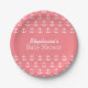 Rosa und weiß Wasseranker gemusterte Babydusche Dank Papiermaschine Teller. Das Design weist ein weißes nautisches Ankermuster auf rot-rosa auf. Personalisieren Sie Ihren eigenen Text.