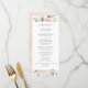 Ein elegantes Abendmenü mit weichen rosa Rosen und boho-inspirierten Aquarellbildern, das Ihren Hochzeitstischen einen anmutigen und entspannenden Charme verleiht