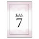 Moderne Schwarze Typografie mit dem Wort Tabelle oben und der Zahl in einer größeren Größe darunter, mit einem Single Linie Rand um den Rand und rot rosa Wasserfarbenwäsche für den Hintergrund entlang der oberen und unteren mit einem weißen Bereich in der Mitte. Das gleiche Waschbecken deckt teilweise den Rücken ab. Personalisieren Sie einfach die Zahlen für jeden Tisch. Sie können auch die Text- und Randfarbe ändern, wenn Sie über die Option Klicken, um weitere Einstellungen zu vornehmen.